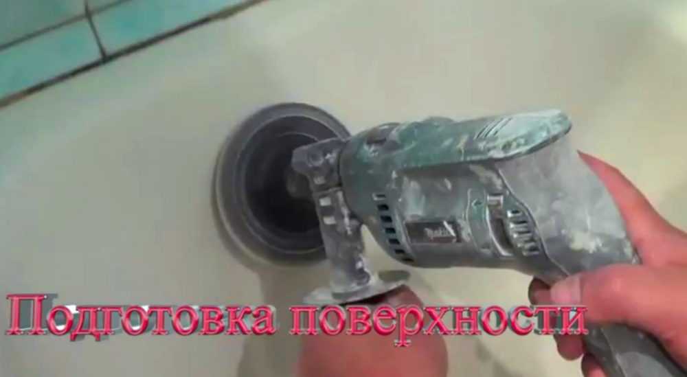 - Обработать поверхность ванны, используя наждачную бумагу.