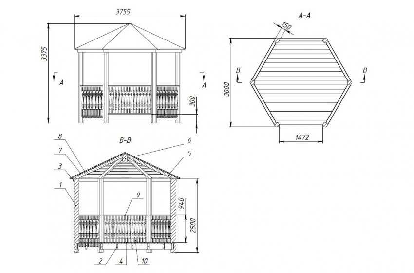 Беседка своими руками: чертежи, схемы