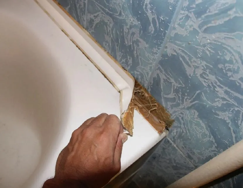 - Первым делом необходимо произвести очистку всех поверхностей и особенно тех, что находятся под ванной, а также выполнить их обработку средствами для борьбы с грибком, которые можно легко приобрести в магазинах со строительными материалами и бытовой химией.