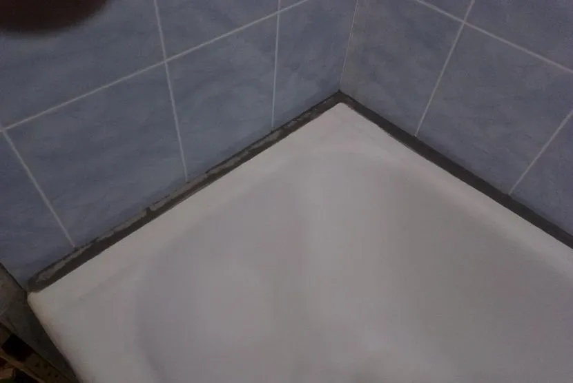 - Предварительная заделка шва. Многие мастера, перед тем как наклеить ленту на ванну с большим зазором, изначально заделывают его при помощи акрилового герметика или плиточного клея. Это необходимо, поскольку при наличии пустоты под бордюром, его можно будет легко повредить нажатием пальца. К тому же, это свободное пространство без должной вентиляции станет источником возникновения плесени.