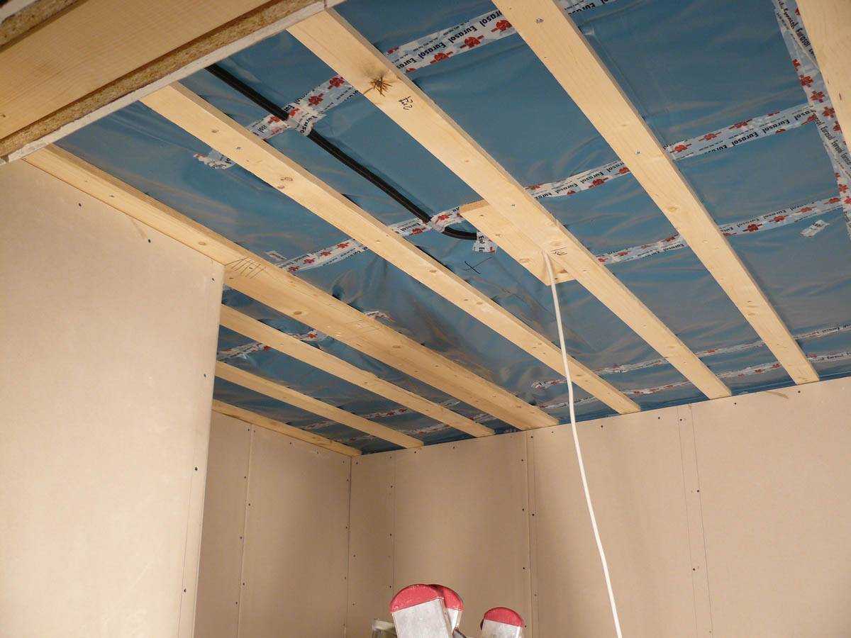 Тем не менее, если вы все же успешно справились с неровными брусками, то ваш следующий шаг – фиксация их на потолке при помощи саморезов. Соблюдайте шаг в 60 см, а если хотите вывести плоскость идеально в уровень, то предусмотрительно вбейте крайние планки и от них в центр и по краям натяните капроновые шнуры. Уже в соответствии с натянутыми шнурами вбивайте аналогичным способом остальные брусья, соблюдая минимально необходимый шаг в 50 см.