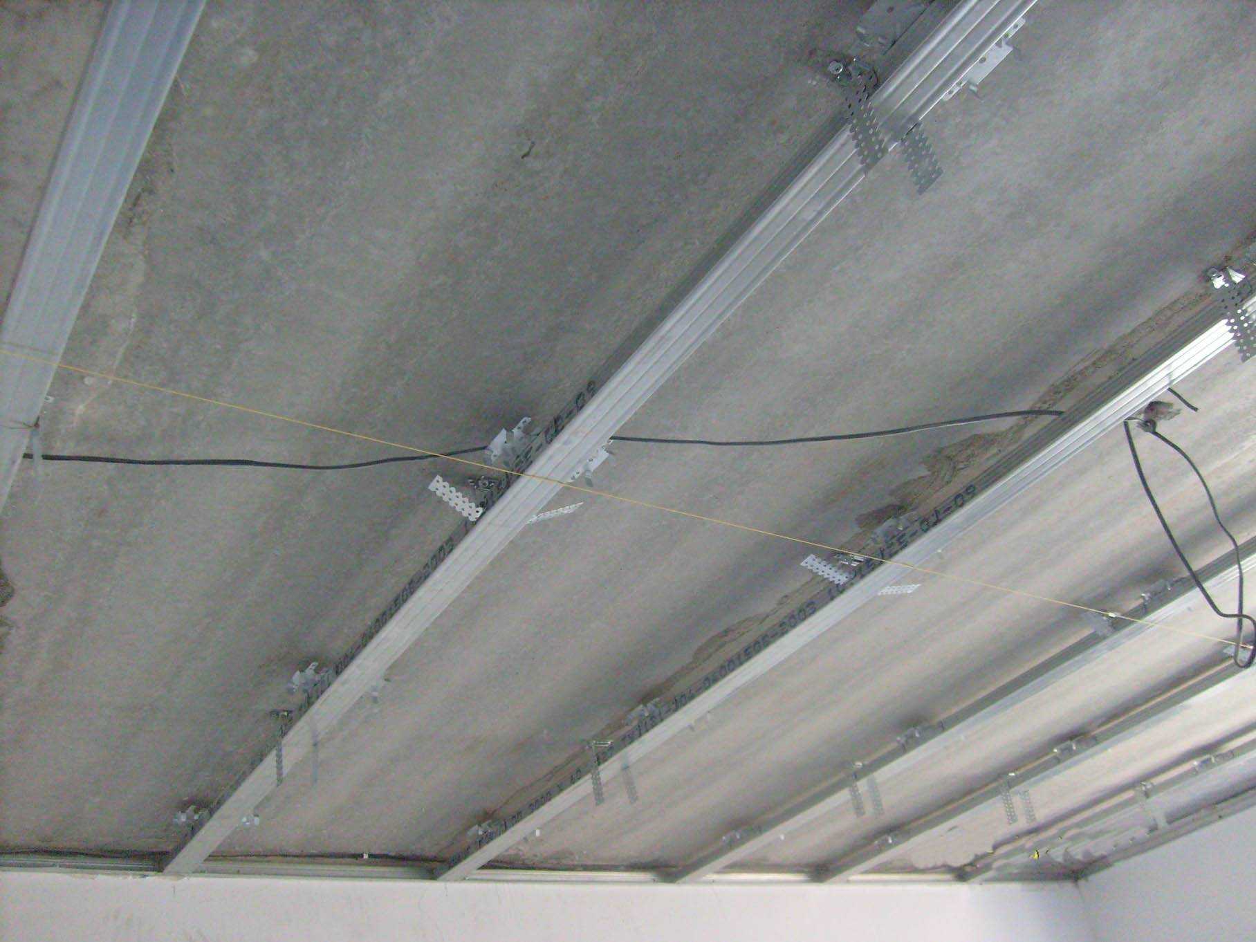 Монтируем каркас из оцинкованных профилей, подробно мы разбирали его в статье подвесные потолки своими руками.