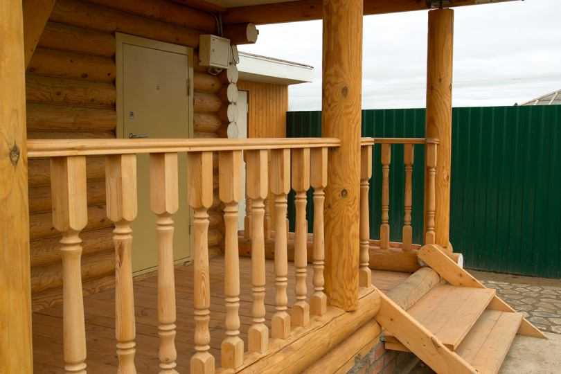 Если на деревянном крыльце всего пара ступеней, можно обойтись и без перил. Но если в доме есть пожилые люди – лучше их предусмотреть.