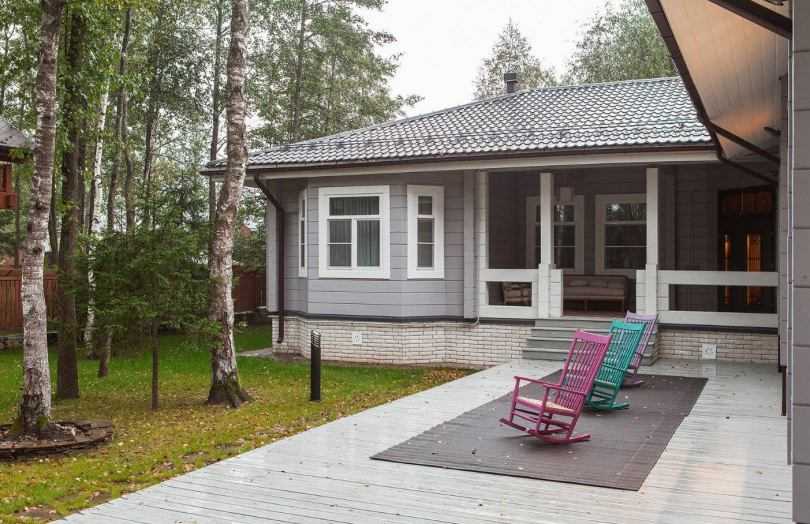 Крыльцо с закрытой верандой находится на одном фундаменте с домом. Подобная конструкция изначально заложена в проект коттеджа. Веранда выполняет те же самые функции, что и крыльцо-тамбур, но при этом обладает большим внутренним пространством, которое задействуют в разных целях.