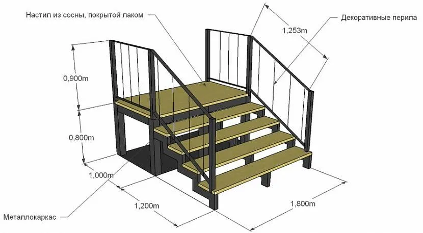 Схема крыльца из дерева