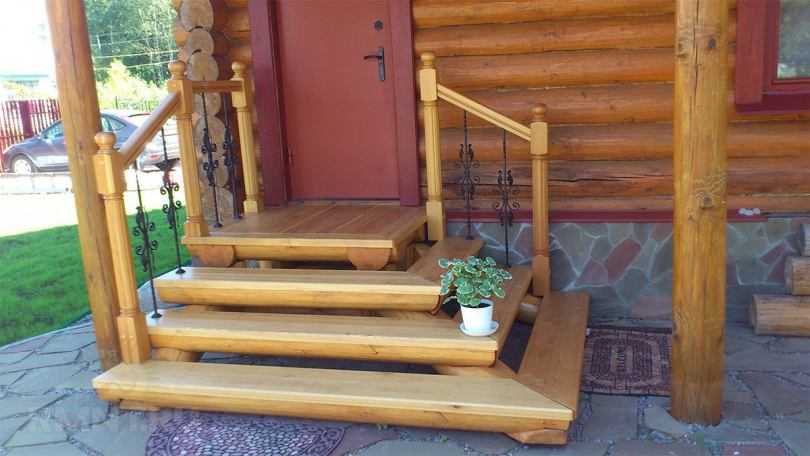 Наиболее распространенным материалом для крыльца является дерево. Ступени крыльца, на которые приходится наибольшая нагрузка, делаются из бруса, лафета, досок не менее 40 мм толщиной.