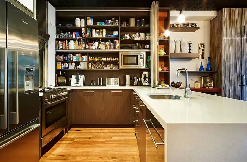 - В нее также можно поместить холодильник и тем самым сэкономить большое количество свободного пространства.