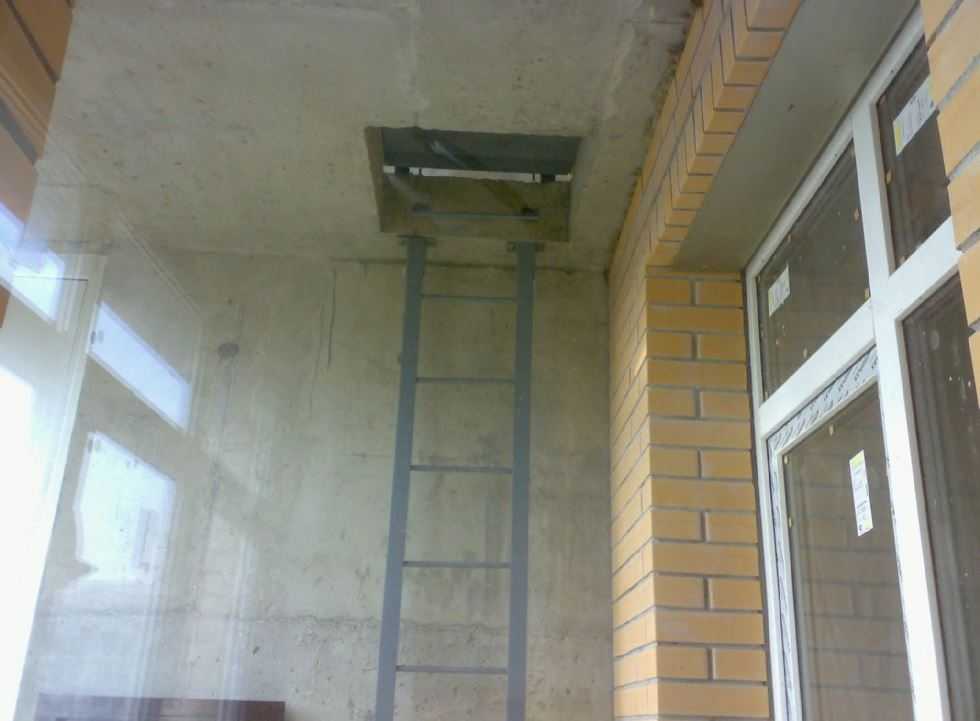 Существует множество вариантов, как переделать противопожарную конструкцию. Отличным вариантом также будет использование складной лестницы на балконе. Она не занимает место и не бросается в глаза.