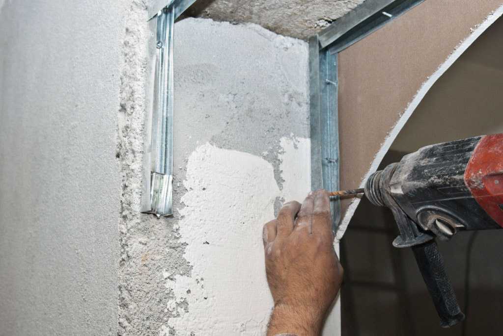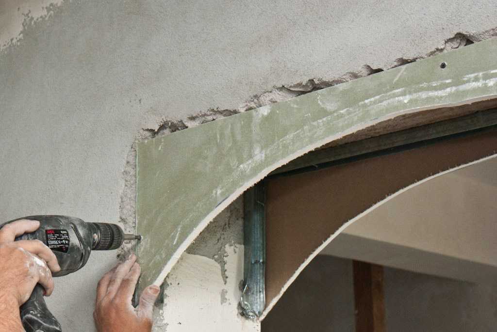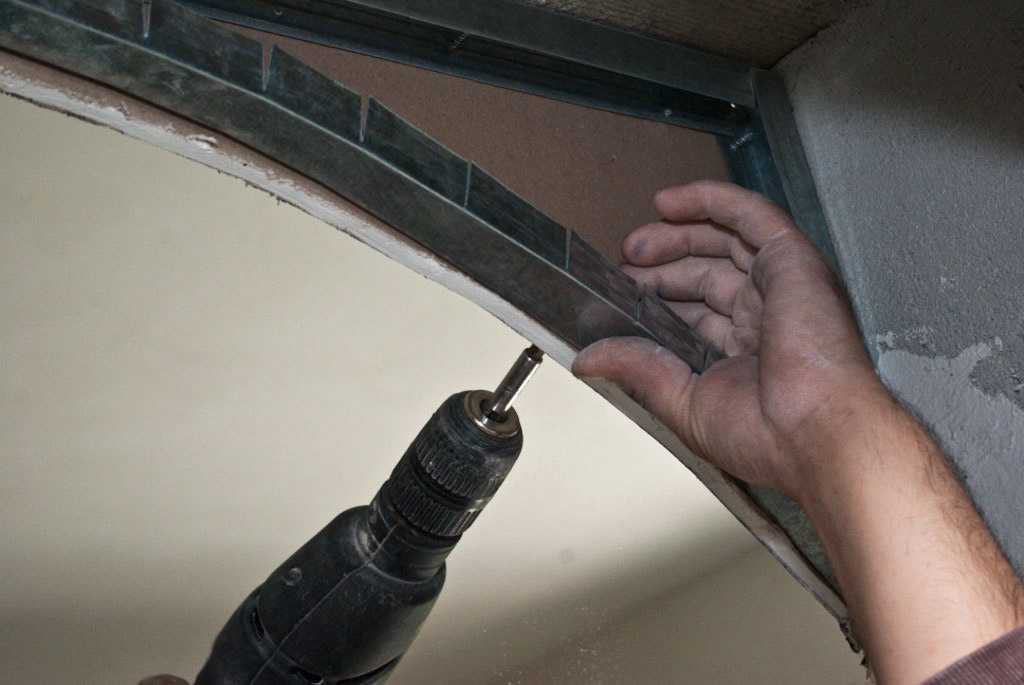 Крепление гипсокартоновой арки к изогнутому металлическому профилю.