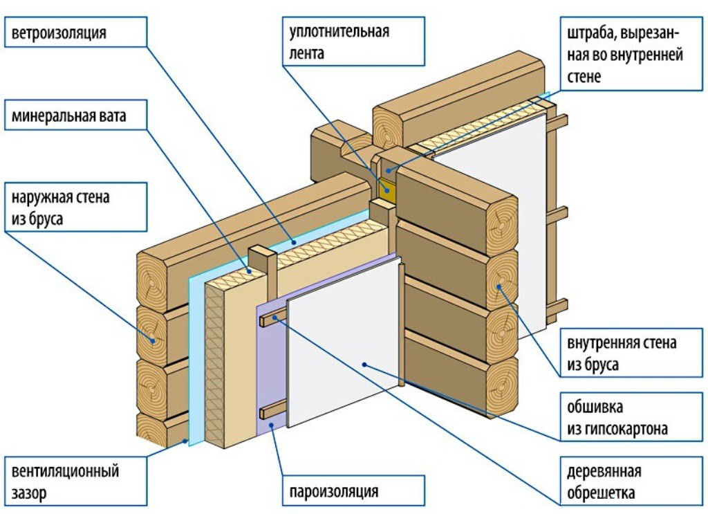Схема теплоизоляции стен минватой