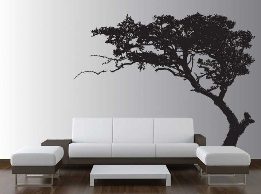 В качестве узора для гостиной можно использовать деревья, цветы, портреты знаменитостей, изображения животных. Здорово смотрятся кошки, вальяжно «отдыхающие» над спинкой дивана, или портрет Мэрилин Монро над креслом. Если стена однотонная, а свободного пространства на ней много, то хорошо будут смотреться именно большие рисунки. А некоторые стикеры могут выгодно дополнить рамки с портретами, настенные полки, бра и прочий декор.