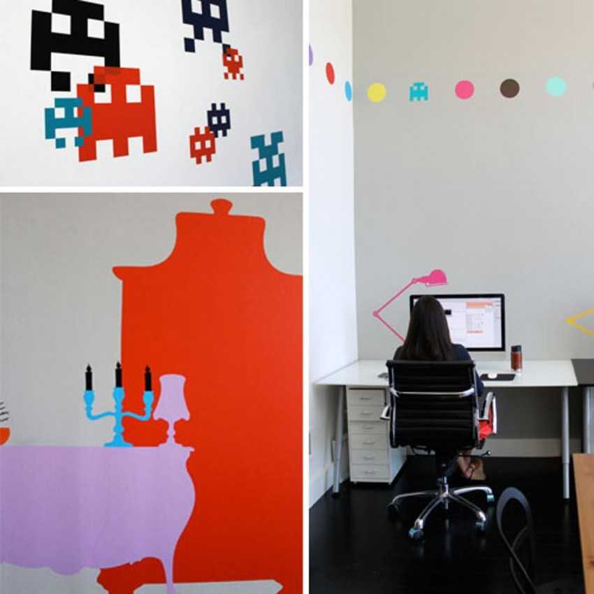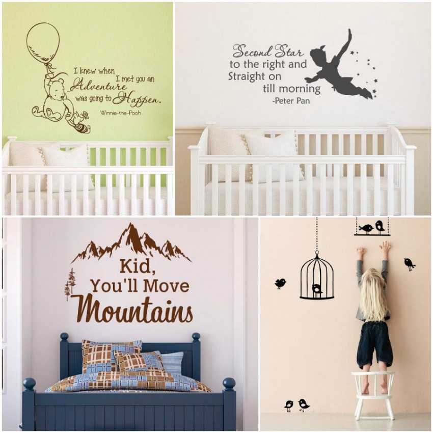 В детской комнате, конечно же, лучше всего использовать яркие рисунки. Но и монохром иногда смотрится очень здорово — например, черно-белые изображения Микки Мауса или игривых собачек. Подбирать наклейки для детской лучше всего в соответствии с возрастом: чем младше ребенок, тем ярче и игривее должны быть сюжеты. Стикеры для детей постарше могут быть строже. И, конечно, учитывайте пол ребенка: цветочки — девочкам, машинки — мальчикам.