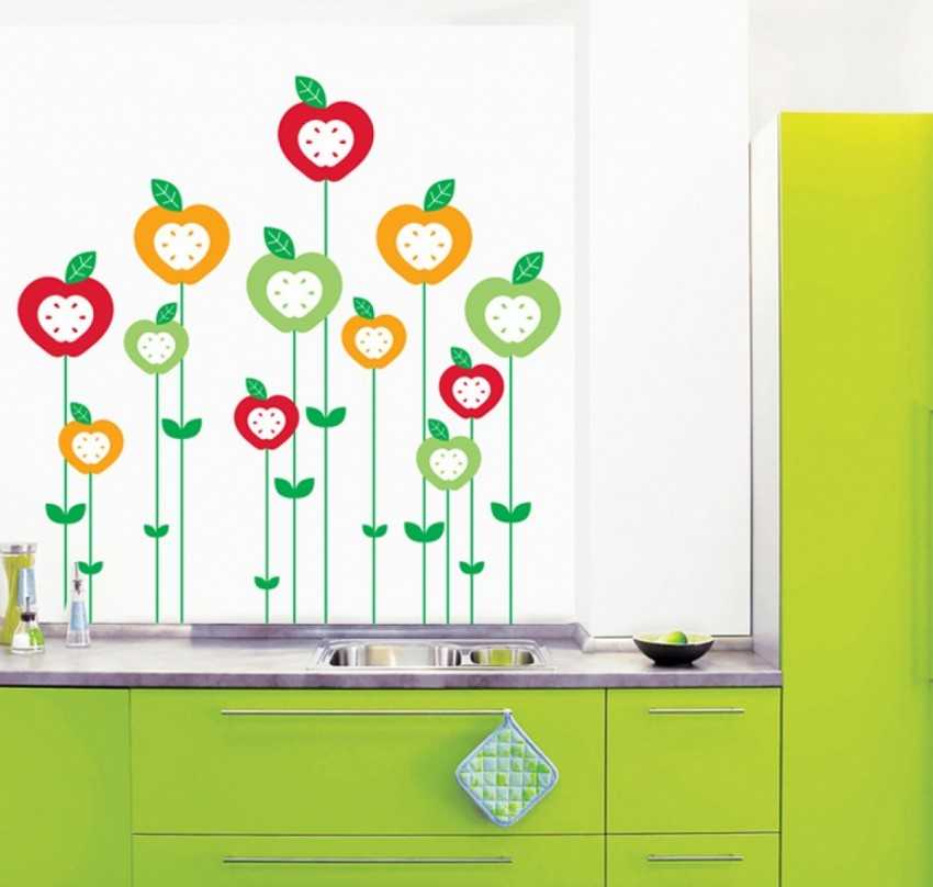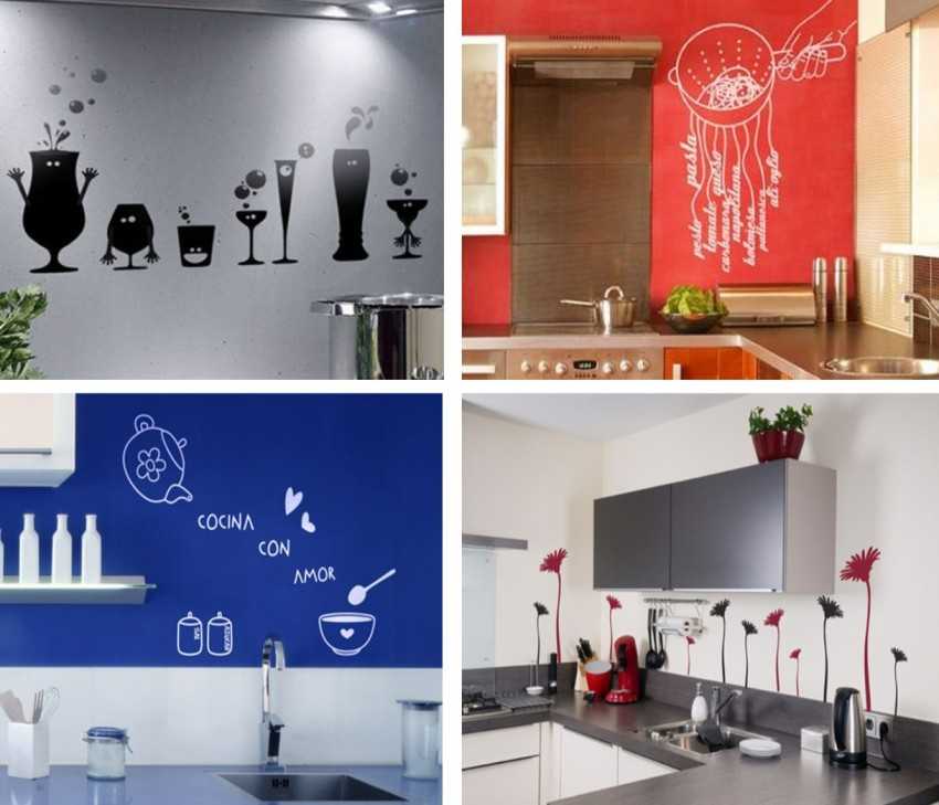 Виниловые наклейки на кухню отличаются высокой прочностью, термостойкостью и надежностью. Они дороже, в отличие от других аналогов. Их внешний вид с годами почти не меняется: изделия не тускнеют, не разбухают, не отклеиваются. Даже в холодных помещениях без отопления такой вид декора не испортится. По цвету виниловые наклейки бывают цветными и монохромными (обычно в черных или серых тонах). Цветные украшения делятся на 2D и 3D группы, то есть бывают двухмерными и объемными. Изделия из винила можно мыть любой бытовой химией и не боятся высоких температур.
