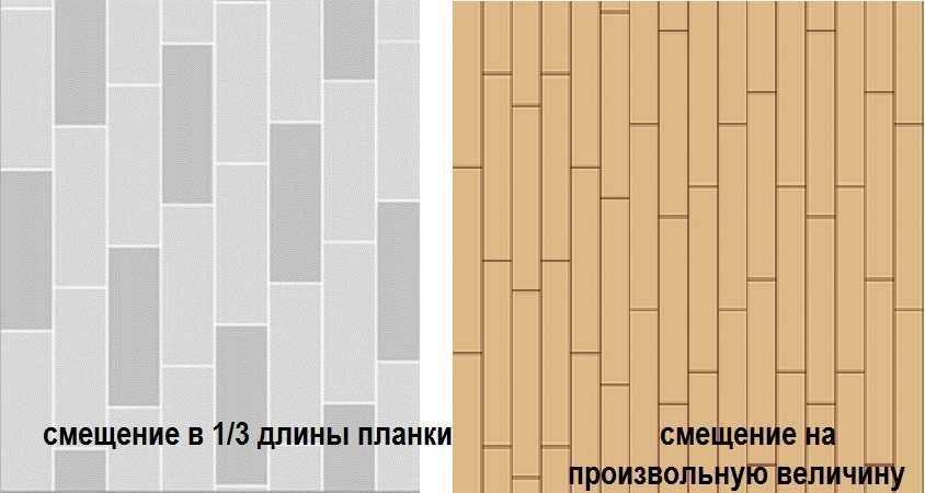 Укладка с произвольным смещением не показывает стыков. Рисунок выглядит естественно, напоминая фактуру деревянного пола. Единственное требование – чтобы от одного стыка до другого было не менее 15 см.