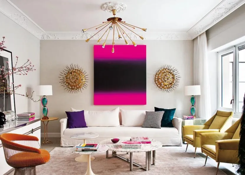 При этом важно, чтобы цвет дублировался в других деталях интерьера: в аксессуарах, рамах, обивке мебели.
