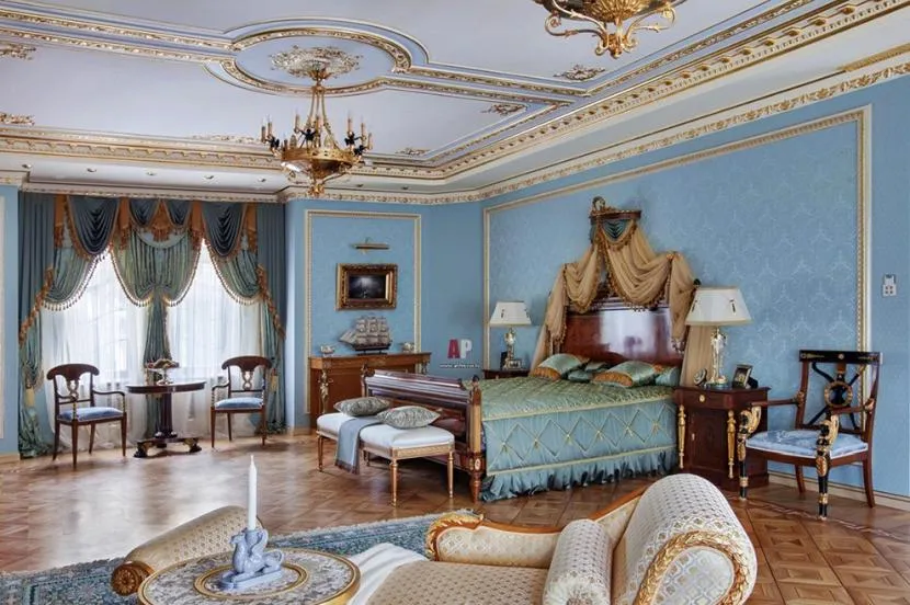 Для классических интерьеров (барокко и рококо) характерно сочетание насыщенного фона и светлого, часто золочёного декора. Подобный контраст смотрится очень декоративно.