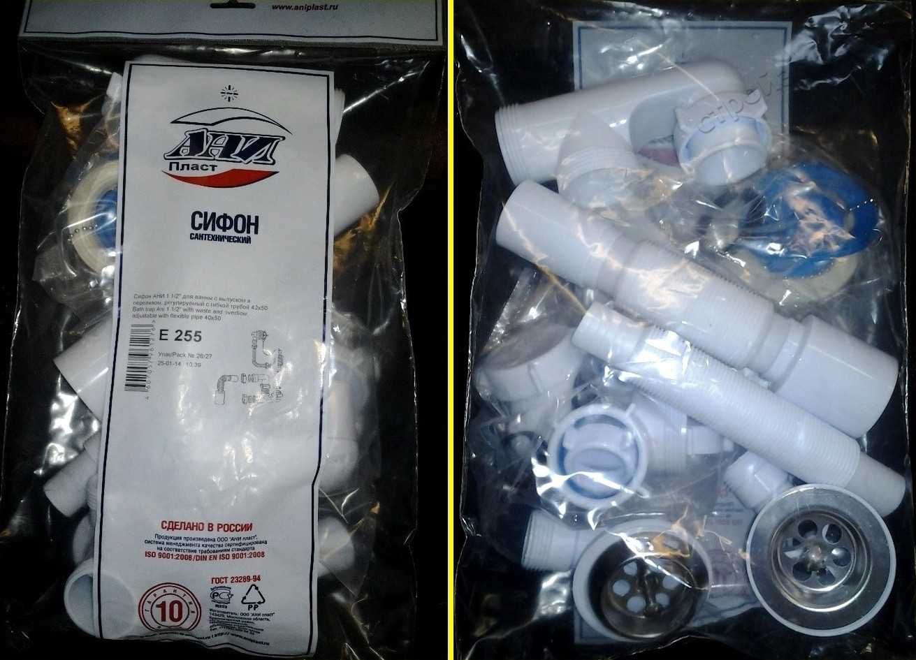 Запакованный комплект сифона для ванной на примере предложений рынка