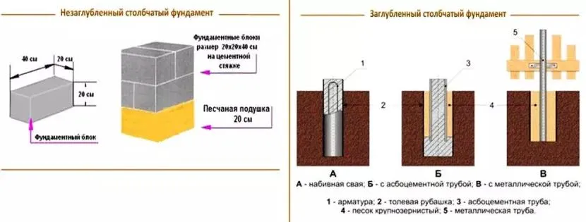 Незаглубленный столбчатый фундамент из бетонных блоков