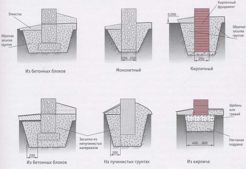 Фундаментные основания могут изготавливаться из следующих материалов: