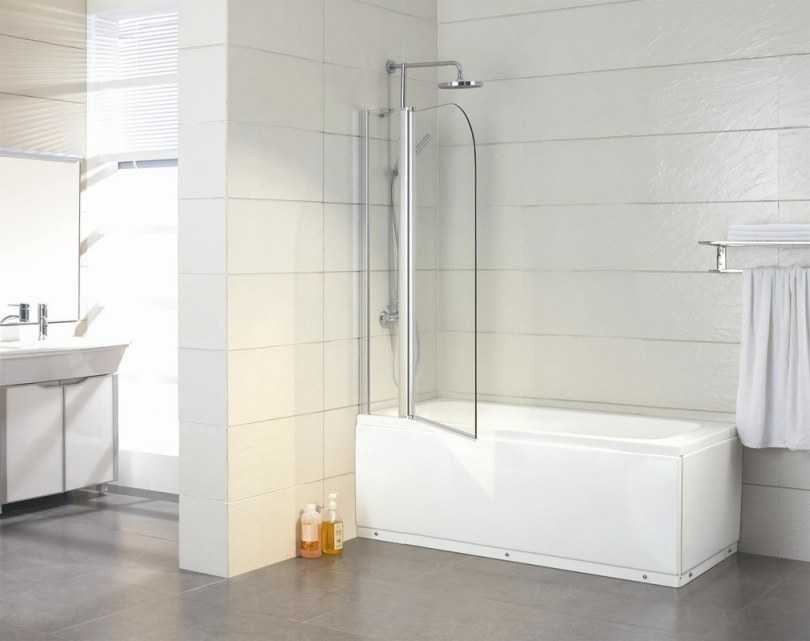 - С ограждением только душевой зоны (существуют стационарные шторки и конструкции с распашными дверками для всех типов ванн)