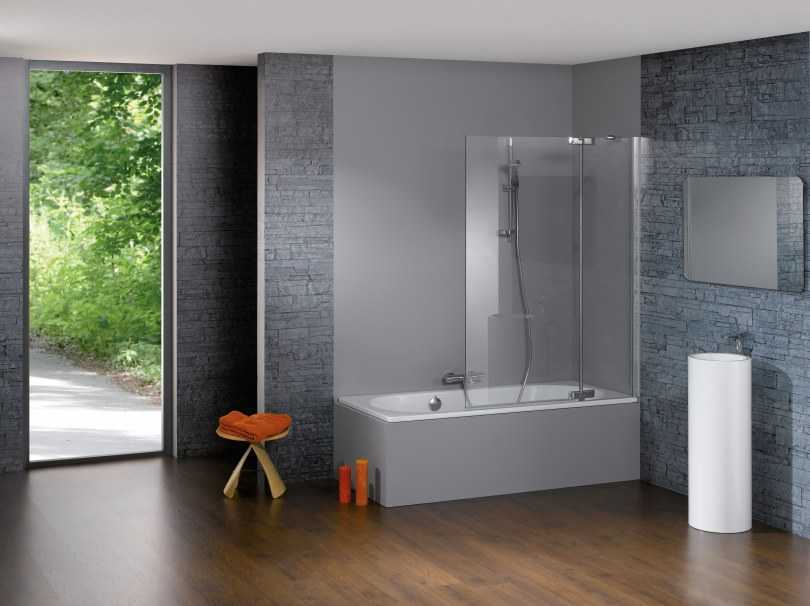 Существуют и модификации шторок для ассиметричных ванн, имеющих различные размеры бортиков. В таких случаях, как правило, дверцы той или иной конструкции сочетаются со стационарными панелями.