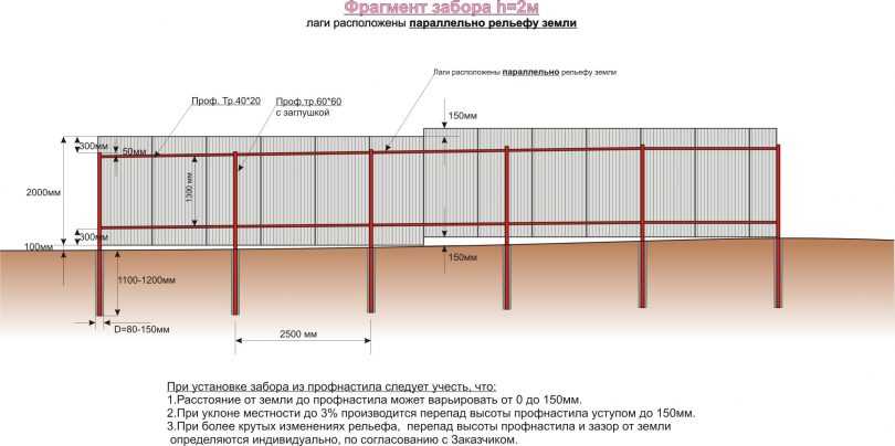 Монтаж забора с уклоном земли