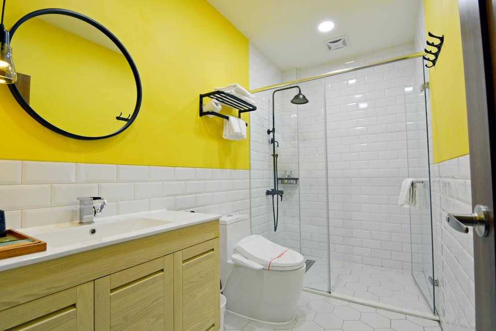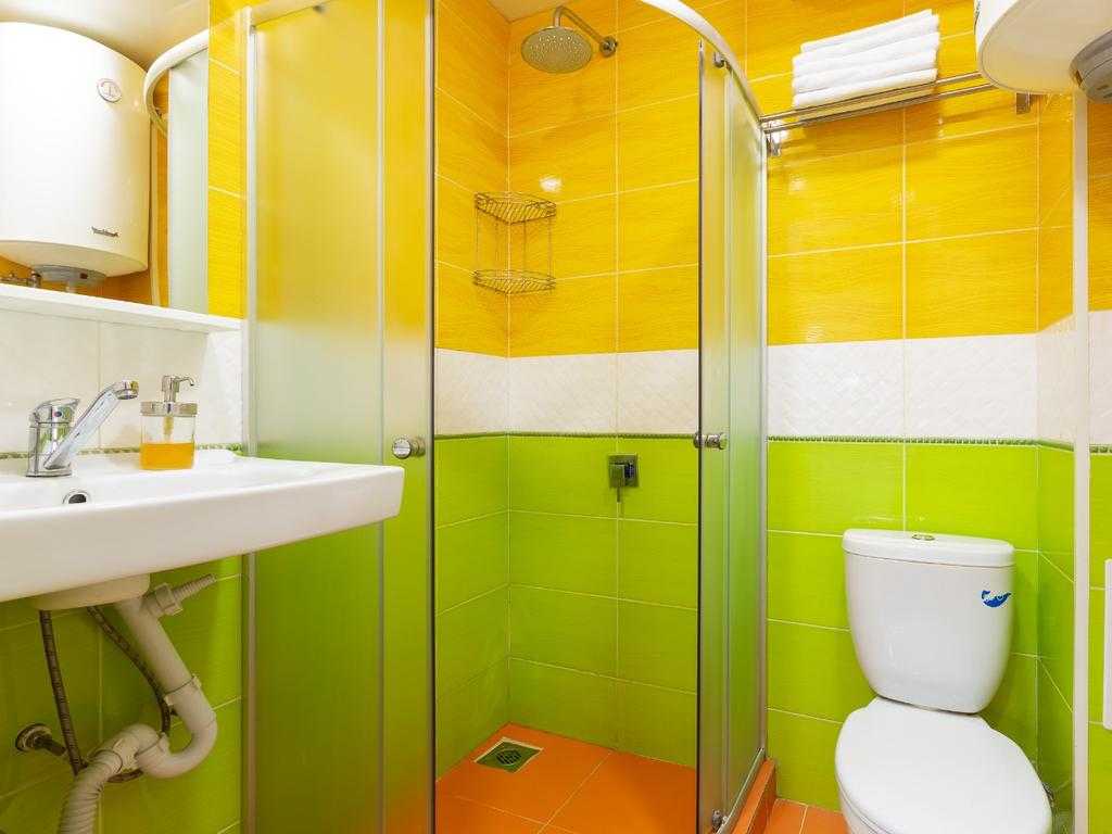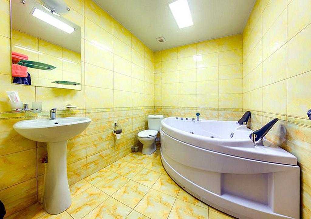 - Слишком яркое освещение в желтых санузлах может вызывать чувство дискомфорта и даже ухудшение самочувствия. Из-за этого во время принятия водных процедур вместо чувства расслабленности и хорошего настроения появляются головная боль и резь в глазах.