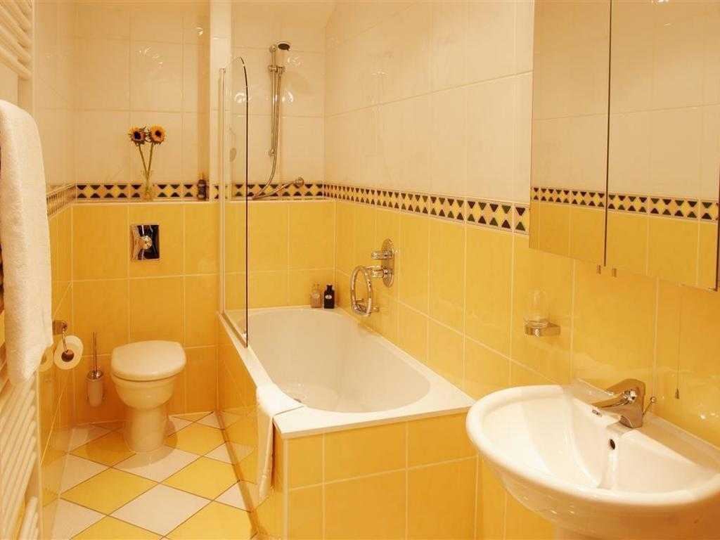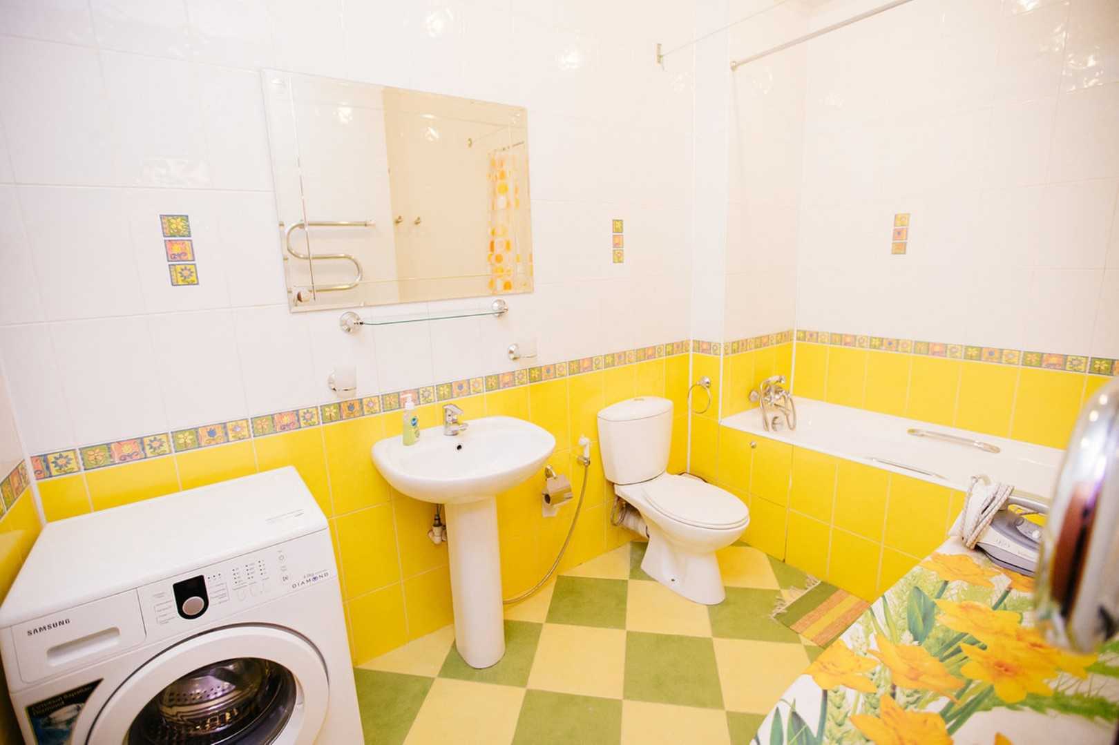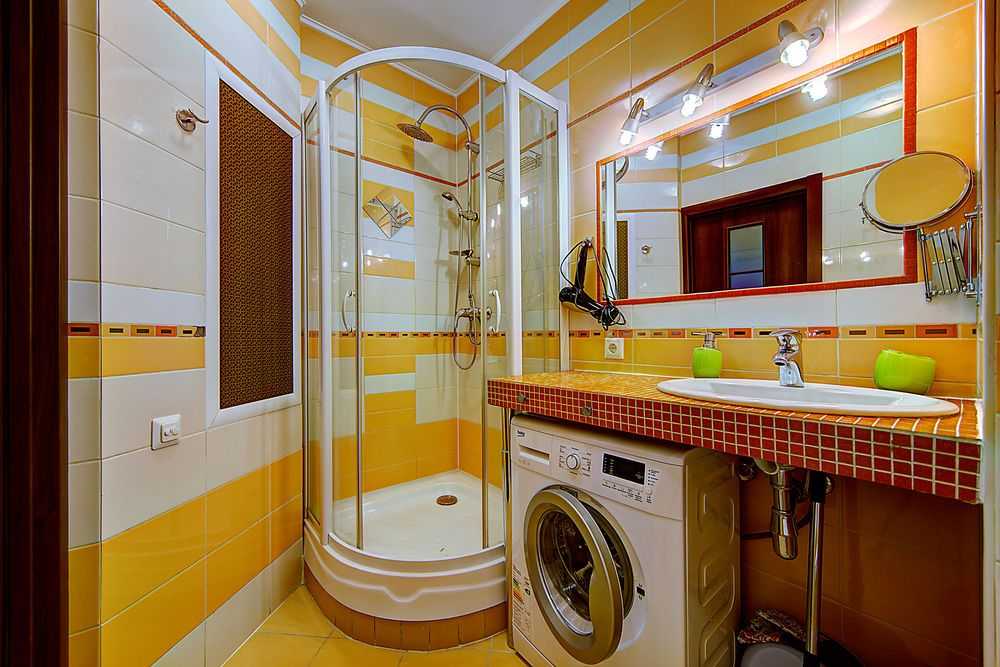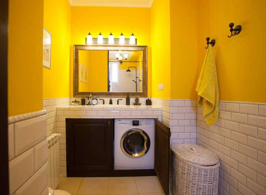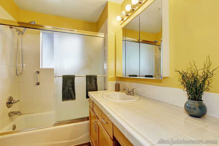 желтый цвет зрительно увеличивает площадь ванной комнаты