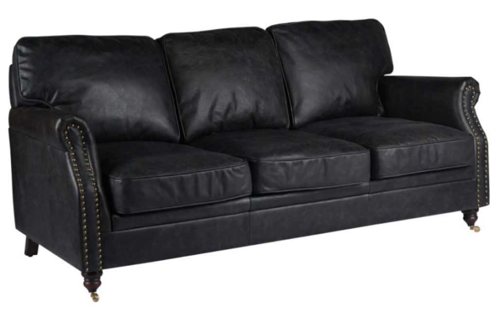 Эта классическая модель относится к категории трехместных. Каркас сделан из массива лиственницы и прослужит долго. Деревянные элементы обработаны защитными пропитками, что исключает риск преждевременного ссыхания и появления грибковых. На передних ножках установлены колесики, что делает изделие мобильным. Приятный бонус, который облегчает процесс уборки помещения. Производится отечественной компанией, которая специализируется на изготовлении качественной мебели для дома. Ширина конструкции – 2 м. Подушки три, как и посадочных места. В качестве декоративных элементов используются заклепки, которые размещены на подлокотниках. В комплект поставки не входят кресла. Отлично подойдут модели из той же линейки, выполнены в идентичном стиле.