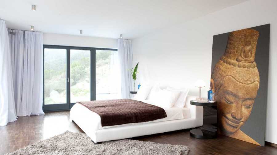 В спальне лучше повесить умиротворяющее изображение сдержанных цветов