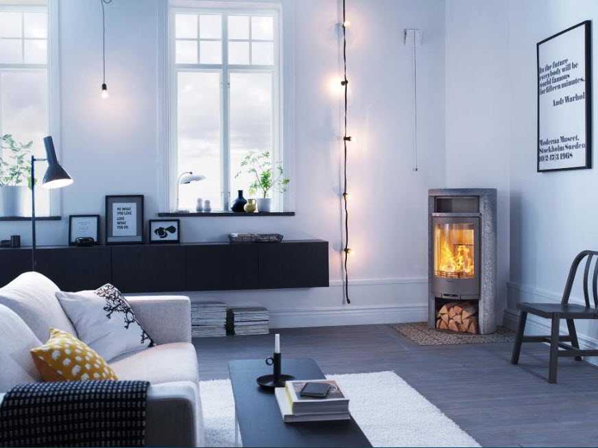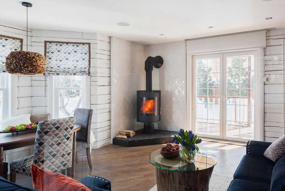 Современная буржуйка не только обогревает помещение, но и украшает комнату