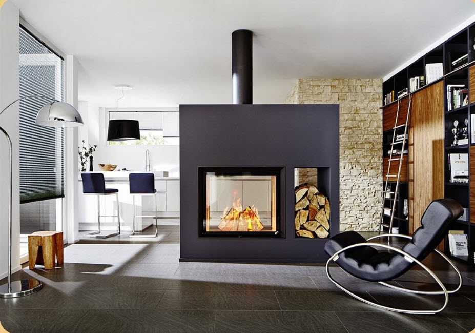 Минимализм – функциональные печи с оригинальной формой, которые не только обогревают помещение, но и разделяют его на функциональные зоны.