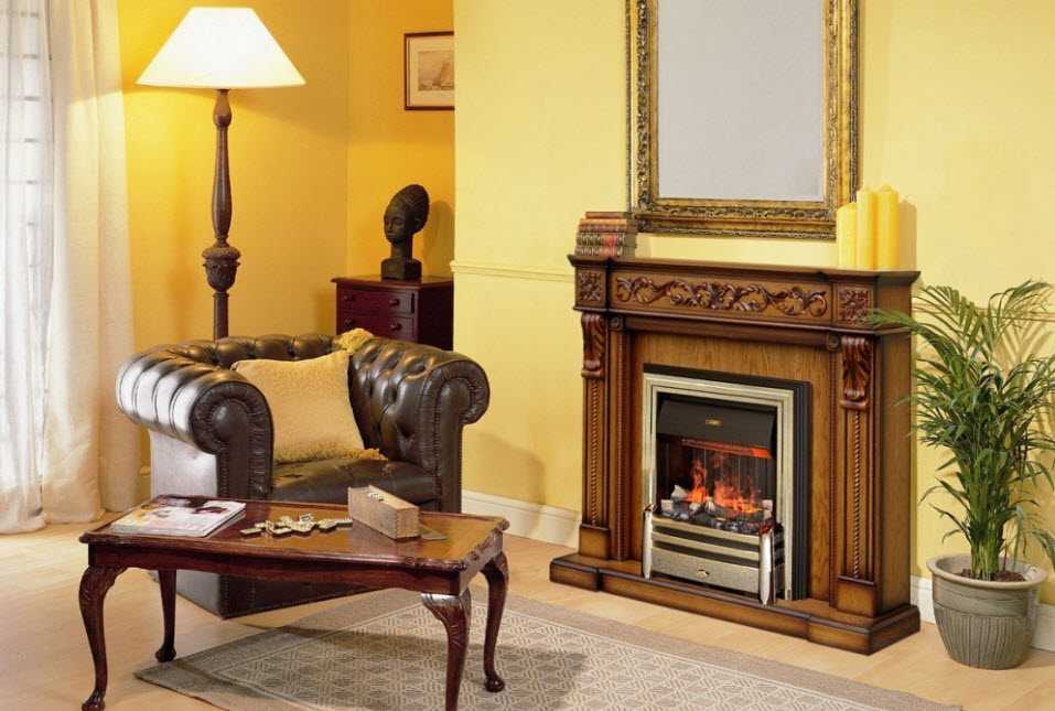 Декоративный камин с чугунной топкой-украшение гостиной.