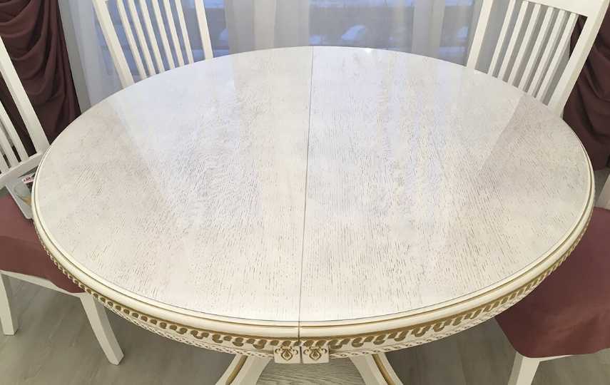 Форма накладки. В готовом виде продаются изделия квадратной, прямоугольной и круглой формы. Все остальное делается под заказ. Если у вас стандартный стол, то снимите размеры, чтобы понимать, какой вариант искать. В круглых конструкциях измеряется диаметр, и по нему будет несложно найти оптимальное решение.