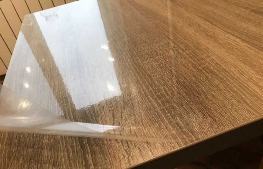 Толщина силиконовой накладки может колебаться от 0,25 мм до 0,2 см. Такой слой пленки отлично справляется со своей защитной функцией и минимально заметен на столе. Как правило, прозрачное покрытие подбирают так, чтобы оно было меньше на несколько миллиметров площади столешницы.