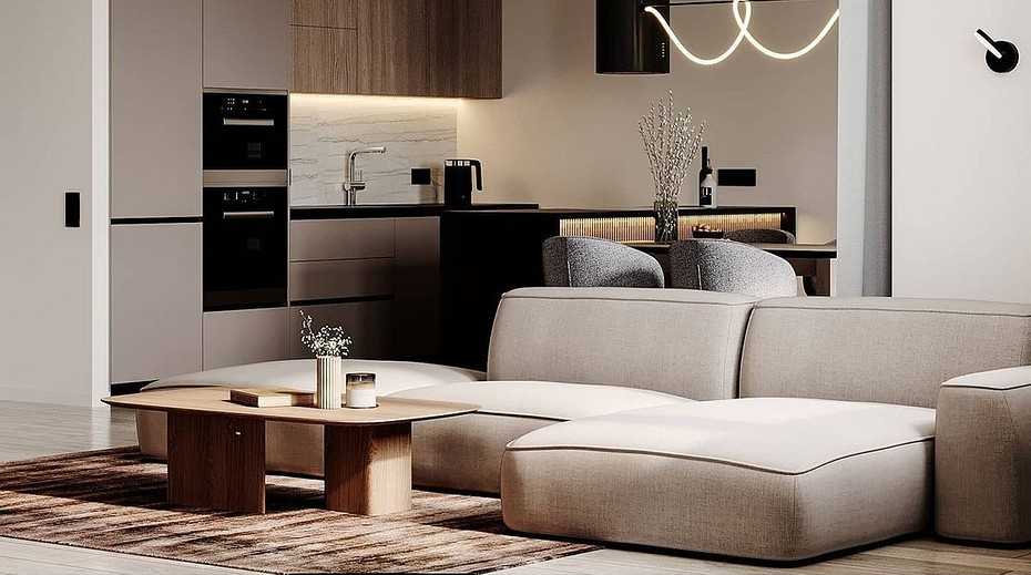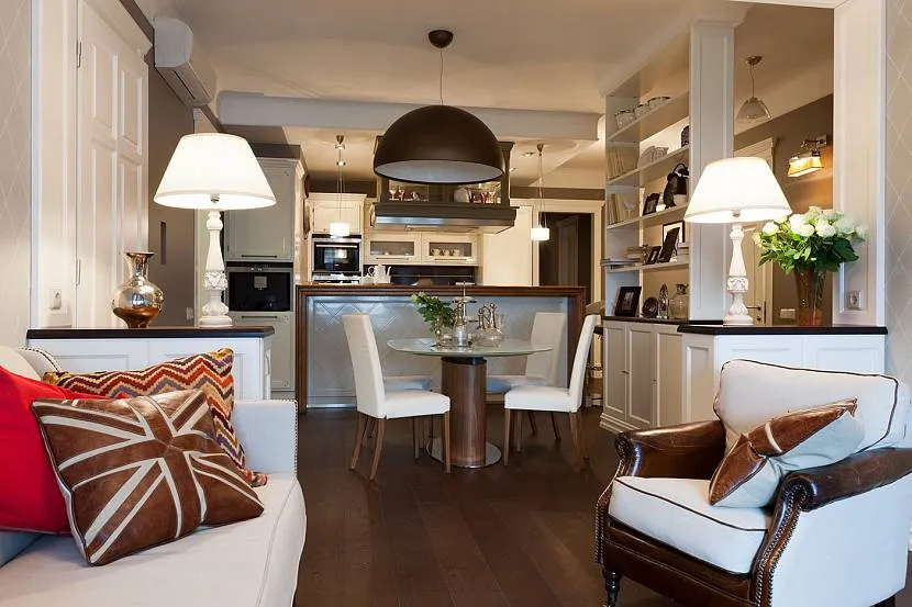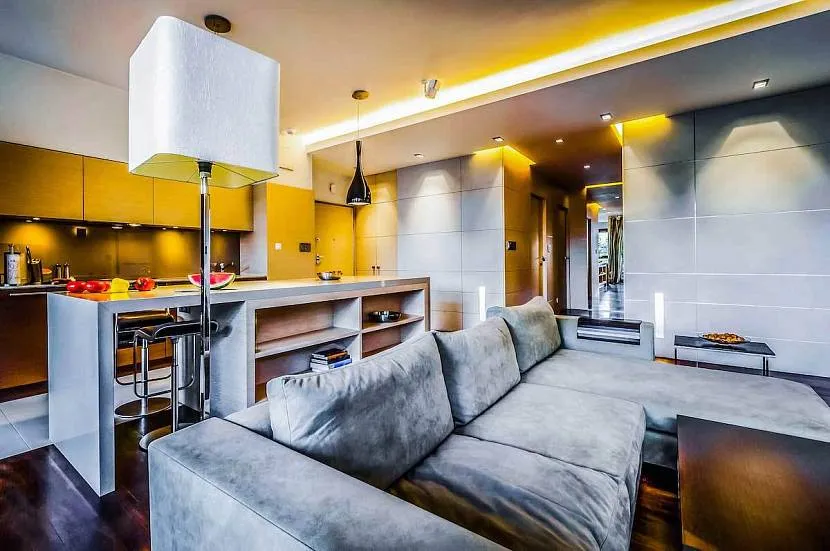 Для этого следует зрительно разделить квартиру на отдельные зоны и изолировать их друг от друга. К примеру, зону приготовления пищи отделить от гостиной, а зону отдыха — от уголка для гостей.