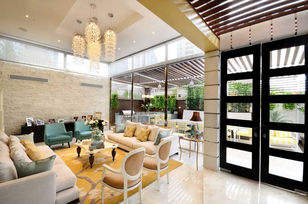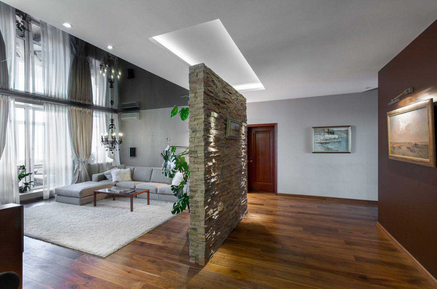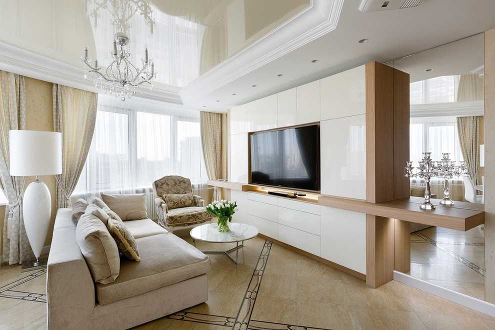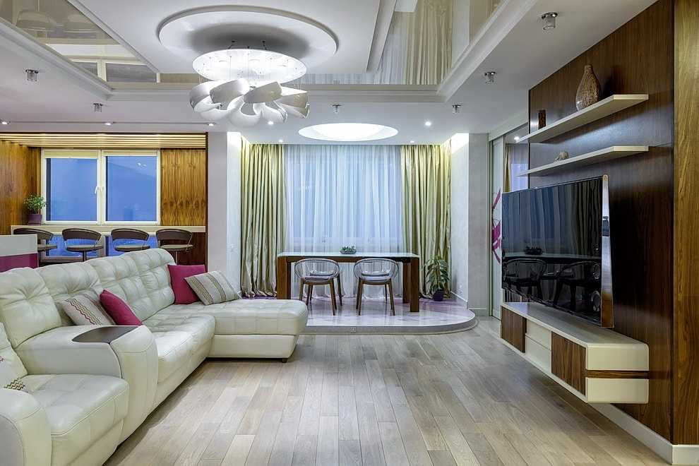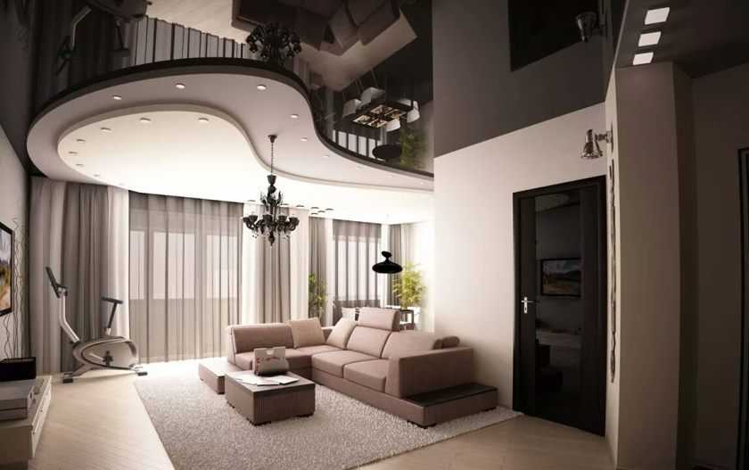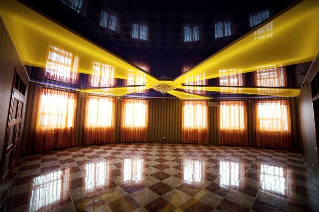 Одноуровневые натяжные потолки для зала: несколько идей
