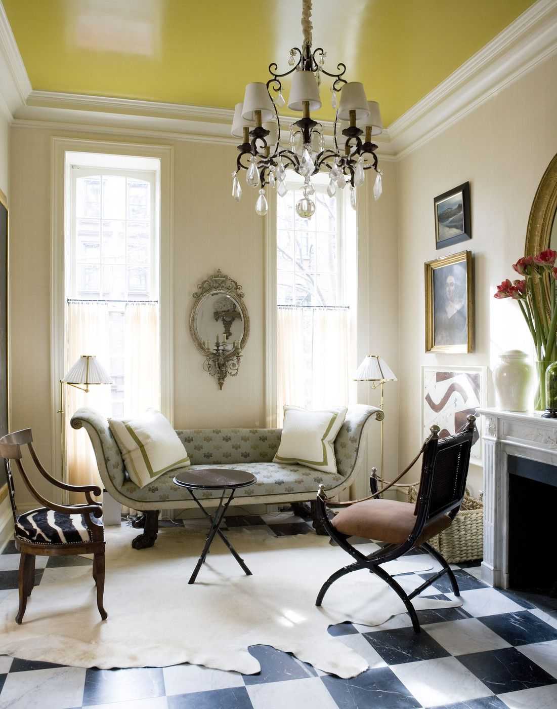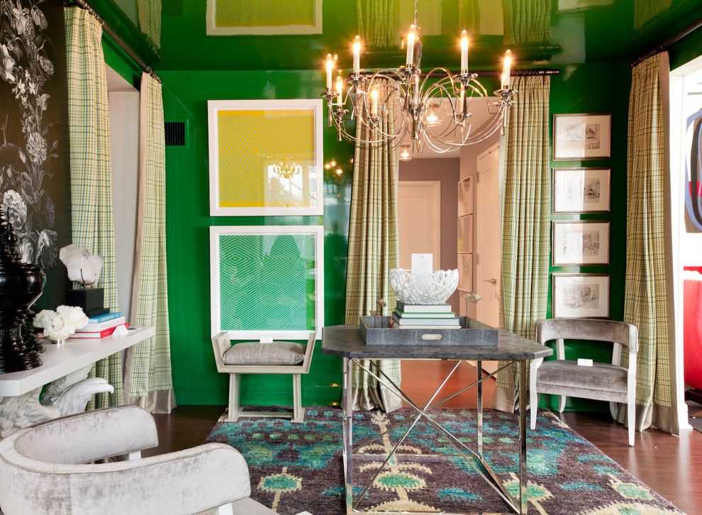 Если вы предпочитаете более традиционные решения, то просто окрасьте потолок в оттенок зеленного нео-минт. Он считается наиболее трендовым и способен придать актуальности любому интерьеру.