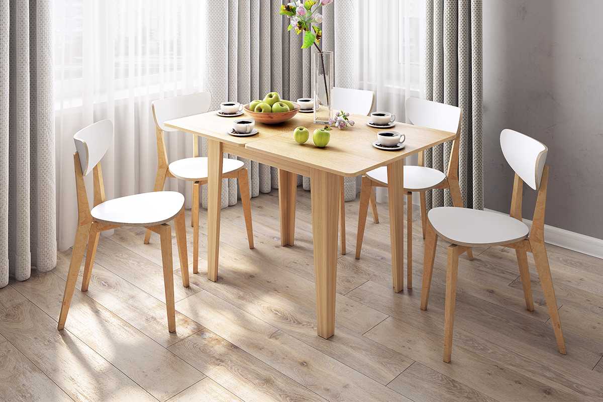 Размер такого стола сравнительно невелик и в сложенном состоянии позволяет разместить его в любой кухне. Если надо, его нетрудно перенести в другое помещение и разложить, используя как обеденный стол для компании из 6-8 пользователей (при необходимости за стол могут сесть до 10 человек).