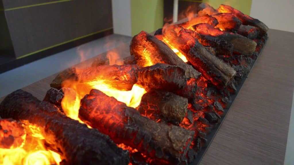 Имитация поленьев и углей сделанных из пластика в самых простых конструкциях просто освещается лампой красного цвета или же лампочка может быть помещена внутрь каждого полена или уголька. Очевидно, что поверить в реалистичность такого пламени очень сложно.