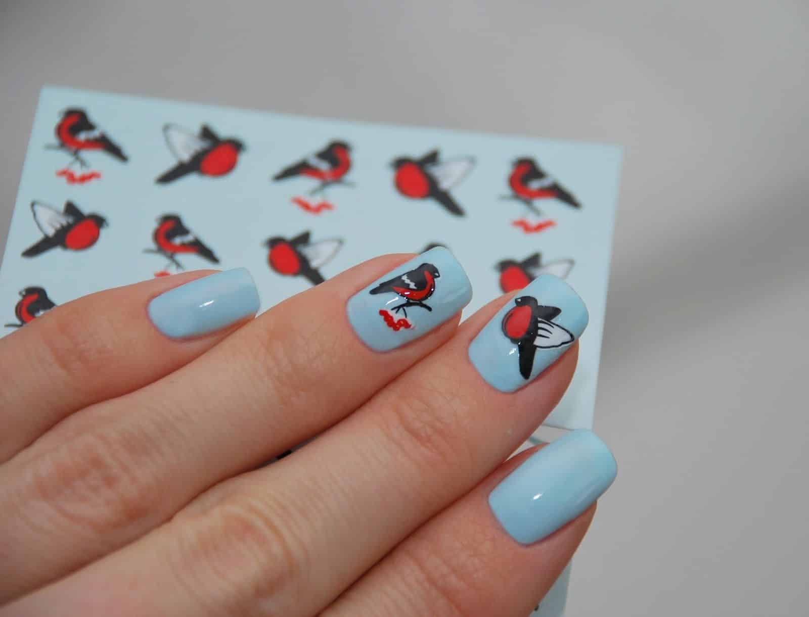 После обработки пластины антисептиком нужно нанести базовый слой лака. Светлый оттенок подчеркнет яркость нанесенного рисунка. После размачивания картинок в течение 5 минут пленка снимается и стикер накладывается на маникюр. Рекомендуется закрепить результат прозрачным лаком. Переводки на ногти, как называют такие стикеры модницы, продержатся до двух недель.