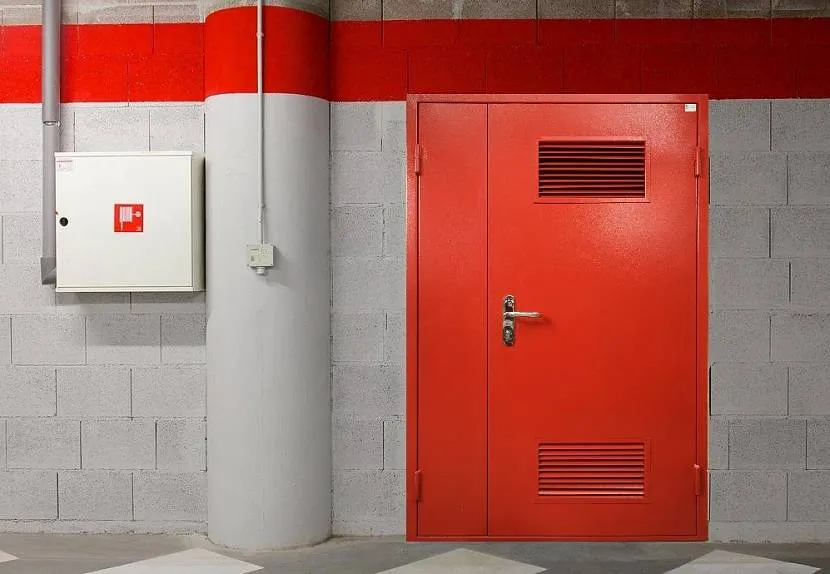 Противопожарная металлическая дверь в котельную с решётками для поступления воздухаИсточник www.dverimekon.ru