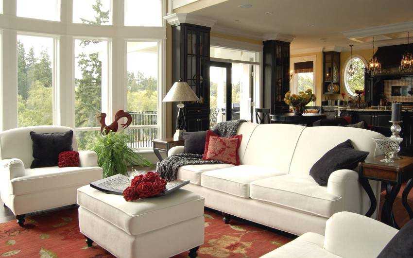 - лояльная и эклектичная цветовая гамма (классическое совмещение коричневых и белых оттенков или контрастные сочетания, например, белый цвет с красным и темно-коричневым или же голубой, белый и песочный и т.п.);