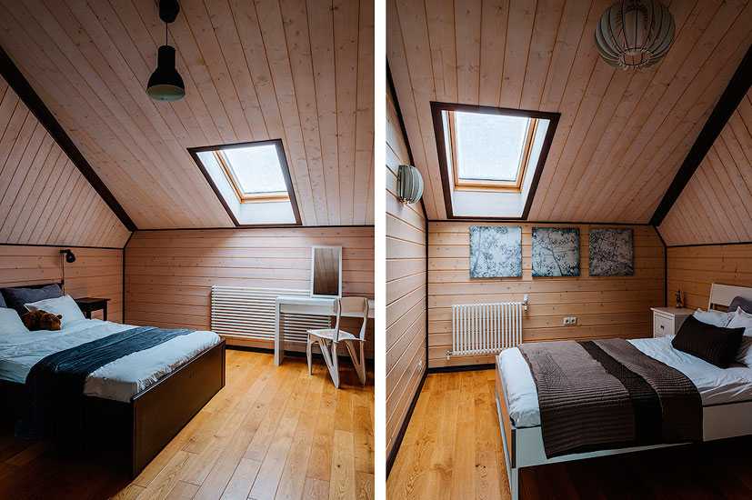 Большую часть времени Анатолий проводит в своем кабинете-спальне, здесь и работает и спит. Стены отделаны деревом, на полу уложен такой же, как и в гостиной ламинат. С одной стороны установлены полки с книгами, а напротив другой стены — рабочий стол, над которым на втором ярусе расположена кровать.