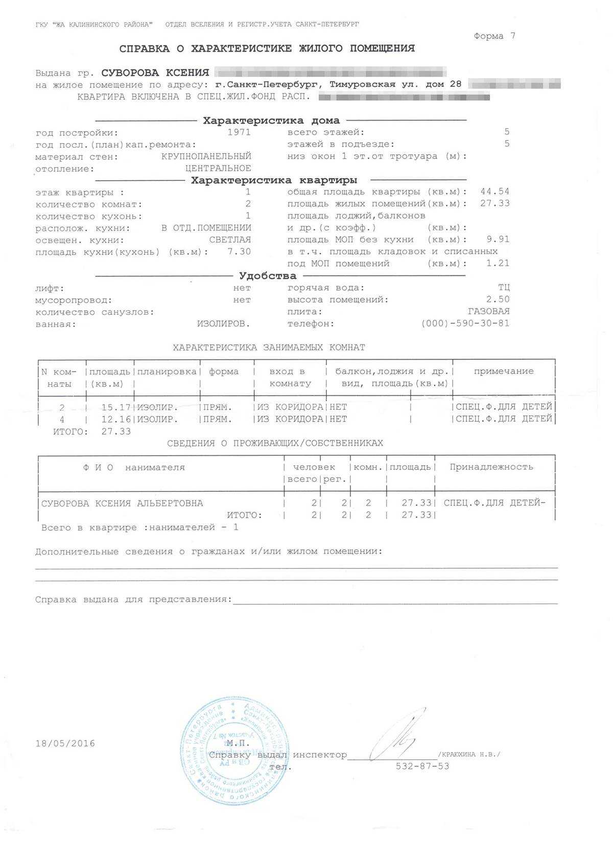 Форма № 7: справка о характеристике жилого помещения. Тут указаны все сведения, которые вы должны знать о своей квартире