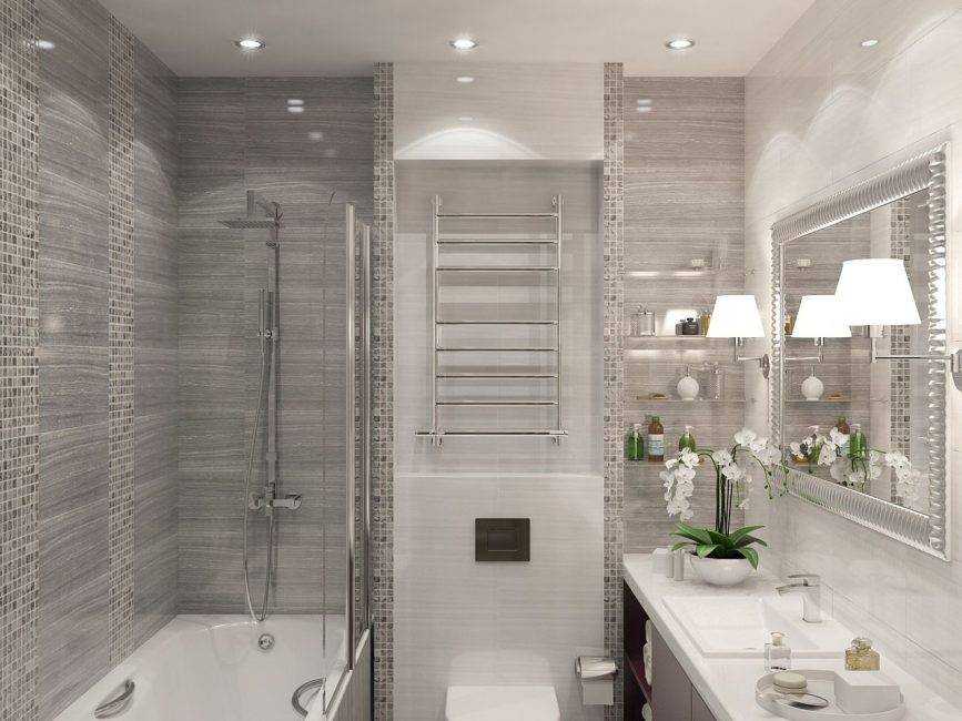 Сэкономить место поможет также установка душевой кабины вместо ванной. Самым лучшим отделочным материалом считается мелкая керамическая плитка, установка зеркал также поможет расширить пространство.