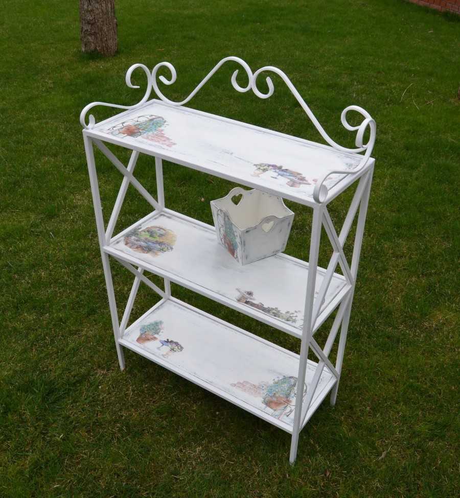 Лучшим вариантом для декора стеллажа является нанесение декупажа с использованием бумаги или ткани. Декупаж – это аппликация на любой поверхности, которая имитирует роспись на ней.