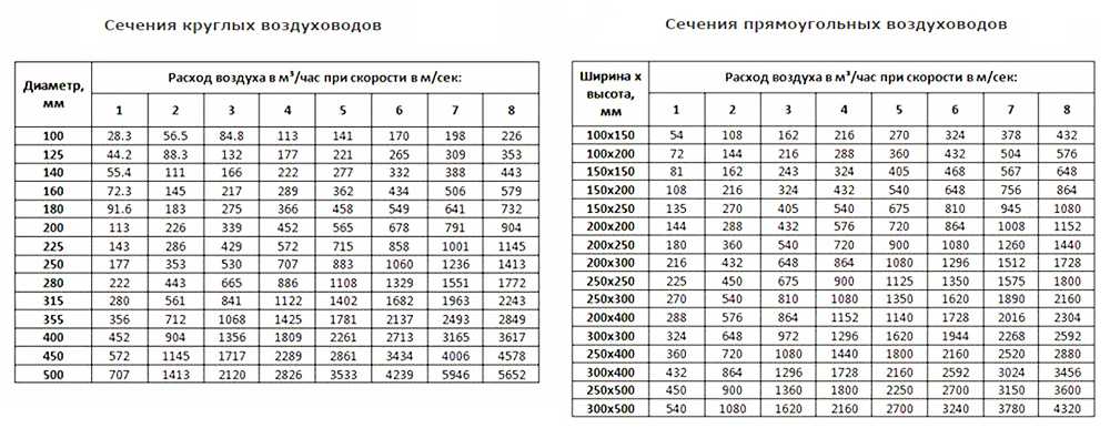 ФОТО: vdomishke.ruТаблицы сечения воздуховодов