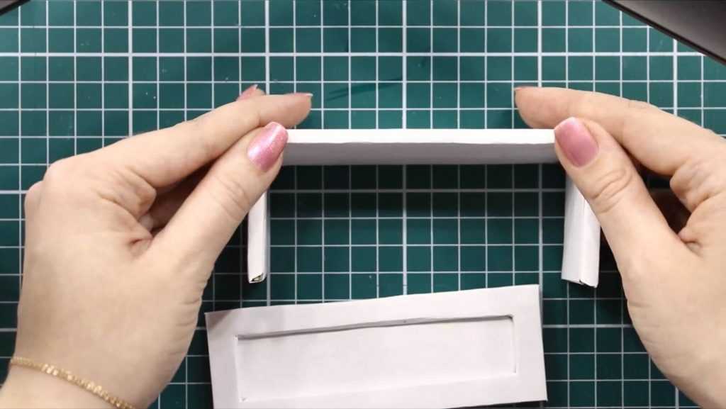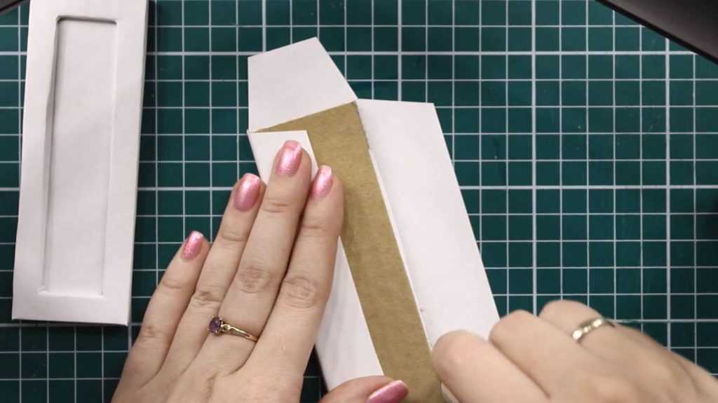 Из картонного листа вырезают полоску с шириной на 2-3 мм меньше, чем ширина самого коробка.