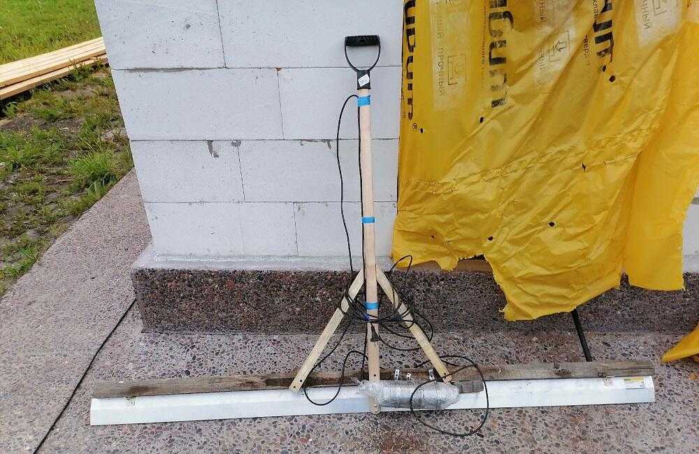 Рассмотрим также, как собирается виброрейка для бетона своими руками, используемая для разглаживания и уплотнения смеси. Ее конструкция не сложнее вибробулавы для дрели — понадобится фактически то же оборудование. Материалы и детали несколько другие.